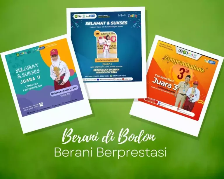 Prestasi membanggakan dipersembahkan oleh Kafilah DIY atas nama Ahmad Nuruzzaman, siswa SD Muhammadiyah Bodon berupa Medali Emas dalam cabang lomba IPA.Siswa yang akrab disapa Ahmad itu kini tengah duduk dibangku kelas 5. Selama mengikuti proses perlombaan di Bandung pada Rabu…